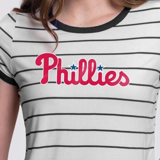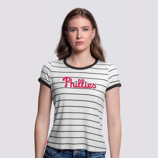 フィラデルフィア・フィリーズ Lusso レディース Nアットasha ストライプ Tシャツ - ホワイトは、メジャーリーグ公認のMLBグッズです。