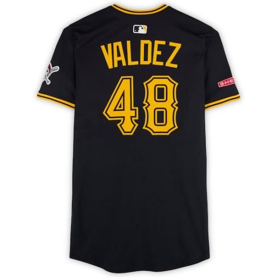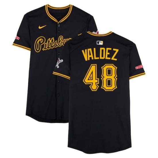 Enmanuel Valdez ピッツバーグ・パイレーツ ファナティクス オーセンティック 実際の試合で使用された #48 ブラック Nike ユニフォーム from マルチple ゲームs During the 2025 MLB Seasオンは、メジャーリーグ公認のMLBグッズです。