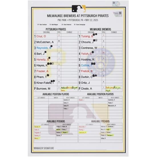 ピッツバーグ・パイレーツ ファナティクス オーセンティック 実際の試合で使用された ラインアップ カード vs. ミルウォーキー・ブルワーズ オン May 22, 2025は、メジャーリーグ公認のMLBグッズです。