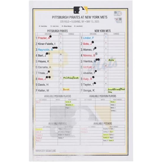 ピッツバーグ・パイレーツ ファナティクス オーセンティック 実際の試合で使用された ラインアップ カード vs. ニューヨーク・メッツ オン May 13, 2025は、メジャーリーグ公認のMLBグッズです。