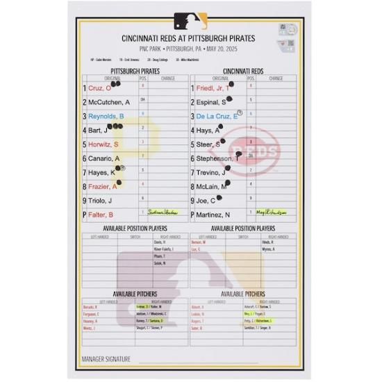 ピッツバーグ・パイレーツ ファナティクス オーセンティック 実際の試合で使用された ラインアップ カード vs. シンシナティ・レッズ オン May 20, 2025は、メジャーリーグ公認のMLBグッズです。
