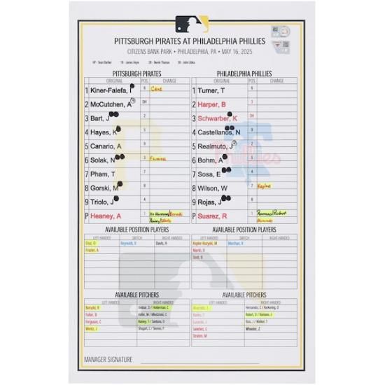 ピッツバーグ・パイレーツ ファナティクス オーセンティック 実際の試合で使用された ラインアップ カード vs. フィラデルフィア・フィリーズ オン May 16, 2025は、メジャーリーグ公認のMLBグッズです。