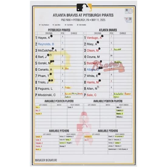 ピッツバーグ・パイレーツ ファナティクス オーセンティック 実際の試合で使用された ラインアップ カード vs. アトランタ・ブレーブス オン May 11, 2025 は、メジャーリーグ公認のMLBグッズです。