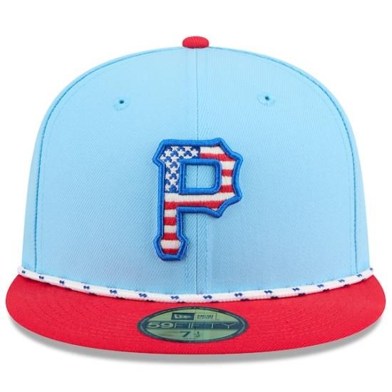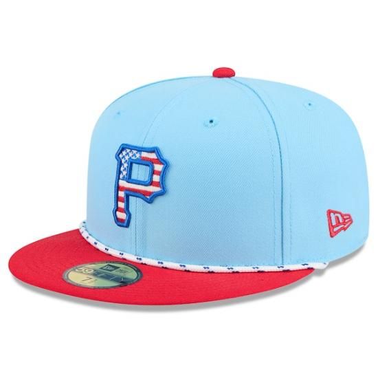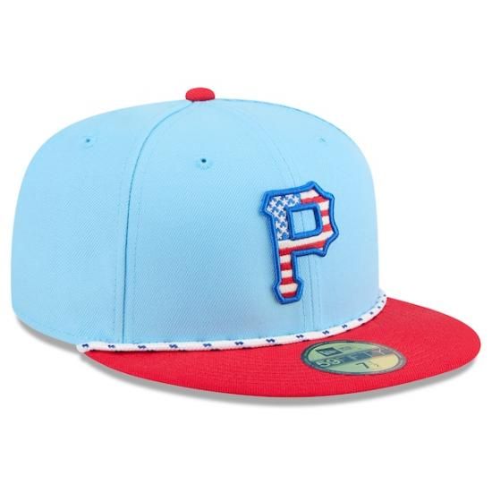 ピッツバーグ・パイレーツ New Era(ニューエラ) 2025 フォーth オブ July 59FIFTY フィットタイプ ハット - ライト ブルー/レッドは、メジャーリーグ公認のMLBグッズです。
