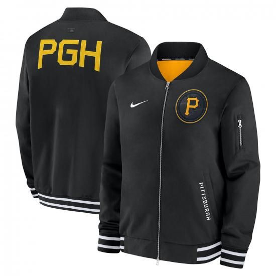 ピッツバーグ・パイレーツ Nike オーセンティック コレクション シティ コネクト フル-ジップ Bomber ジャケット - ブラックは、メジャーリーグ公認のMLBグッズです。