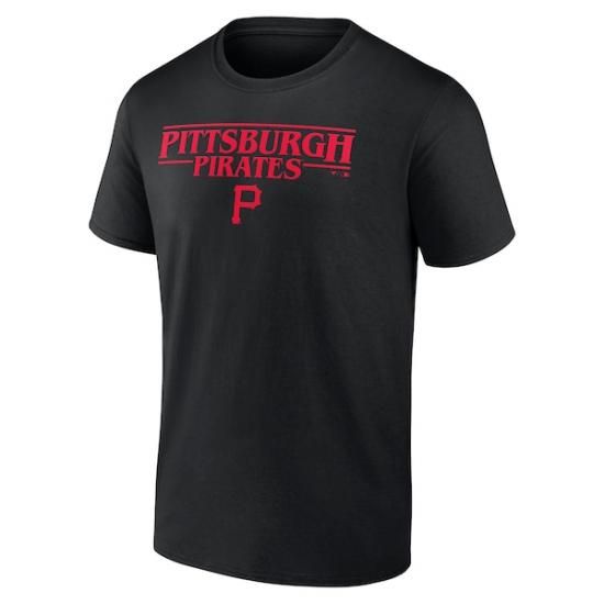 ピッツバーグ・パイレーツ Stranger Things ロゴ ロックup Tシャツ - ブラックは、メジャーリーグ公認のMLBグッズです。