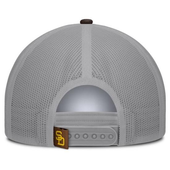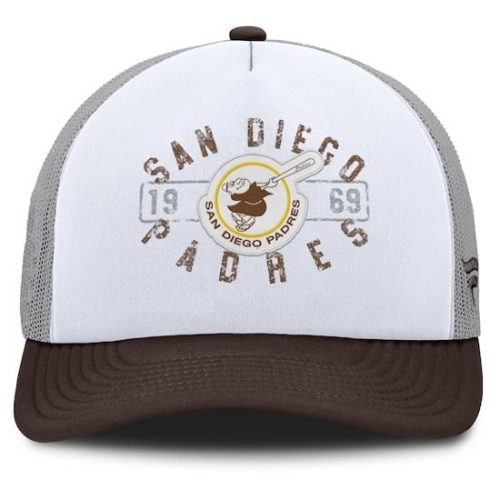 サンディエゴ・パドレス ファナティクス デザインアットed A-フレーム フォーム フロント トラッカー 調節可能 ハット - ホワイト/ブラウンは、メジャーリーグ公認のMLBグッズです。