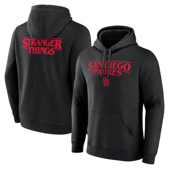サンディエゴ・パドレス Stranger Things ロゴ ロックup プルオーバー パーカー - ブラックは、メジャーリーグ公認のMLBグッズです。