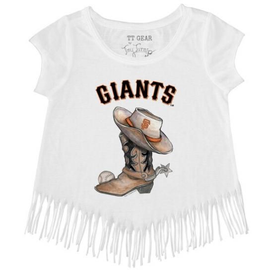 サンフランシスコ・ジャイアンツ タイニー ターニプ ガール キッズ(歩き始めの子供) Cowboy Boot Fringe Tシャツ - ホワイトは、メジャーリーグ公認のMLBグッズです。