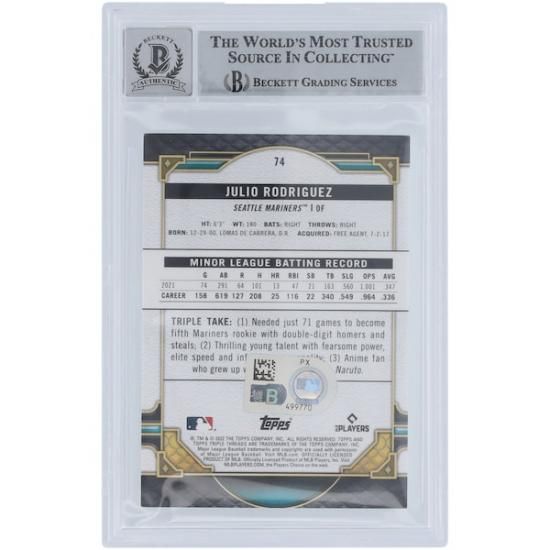 フリオ・ロドリゲス シアトル・マリナーズ 直筆サイン入り 2022 トッププレーヤー トリプル スレーズ #74 Beckett ファナティクス Witnessed オーセンティックアットed 10 ルーキー カードは、メジャーリーグ公認のMLBグッズです。