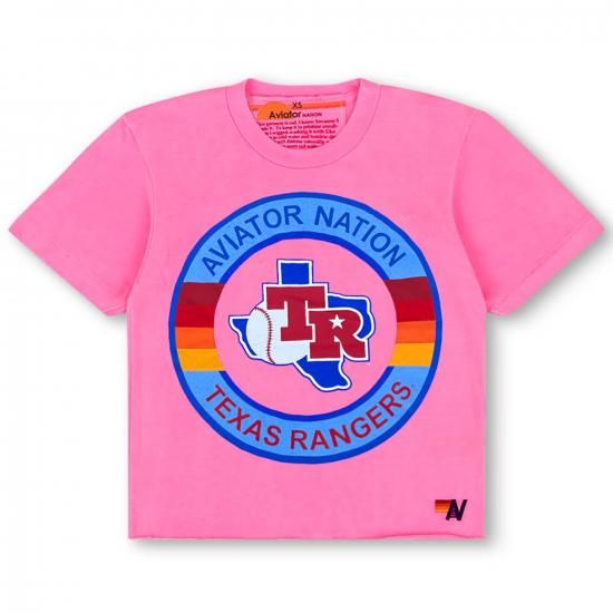 テキサス・レンジャーズ Aviaトゥーr ネーション x MLB レディース トライブレンド ボーイフレンド Tシャツ - ピンクは、メジャーリーグ公認のMLBグッズです。