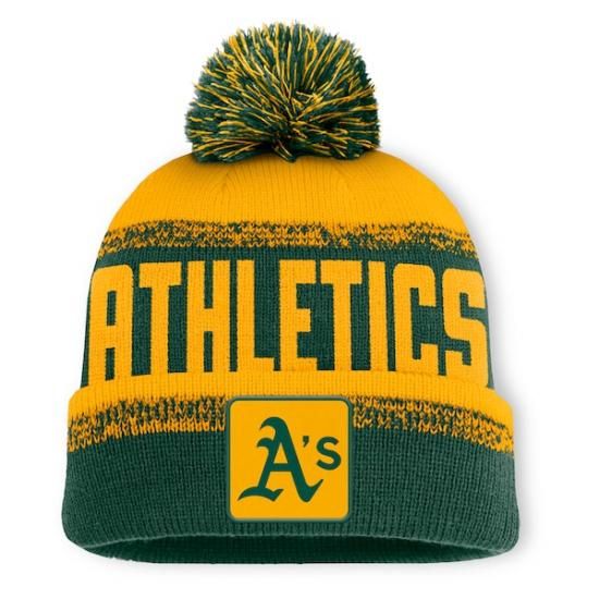 アスレチックス ファナティクス No-Doubter 折り返し ニット帽 with ポンポン - グリーン/ゴールドは、メジャーリーグ公認のMLBグッズです。