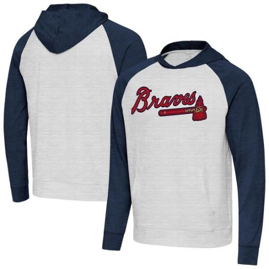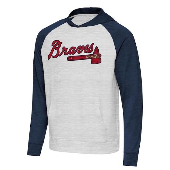 アトランタ・ブレーブス アンティグア Urgent プルオーバー パーカー - ヘザー ネイビー/グレーは、メジャーリーグ公認のMLBグッズです。