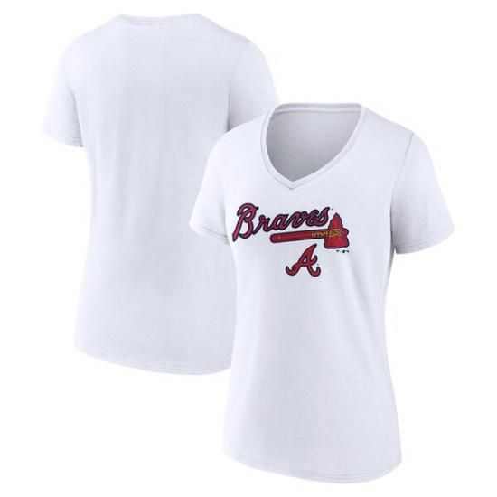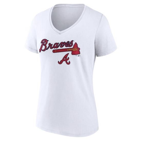 アトランタ・ブレーブス レディース チーム ロックup Vネック Tシャツ - ホワイト