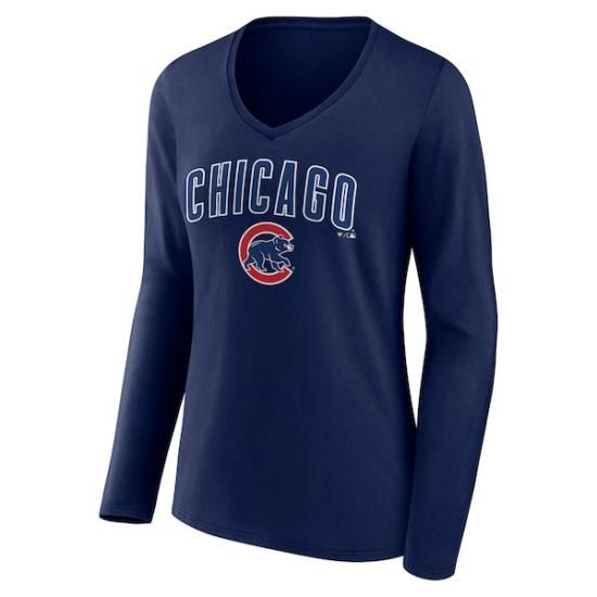 シカゴ・カブス レディース チーム ロックup ロングスリーブ Vネック Tシャツ - ネイビーは、メジャーリーグ公認のMLBグッズです。