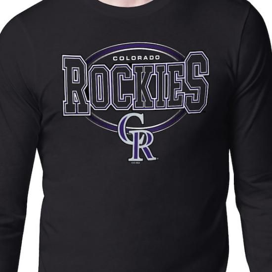 コロラド・ロッキーズ スターター チーム トラック グラフィック ロングスリーブ Tシャツ - ブラックは、メジャーリーグ公認のMLBグッズです。