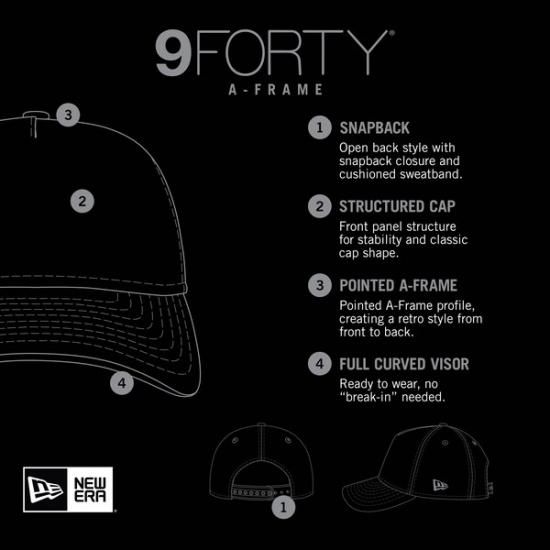 ブランド:New Era(ニューエラ) インポートグッズ The New Era(ニューエラ) 9FORTY A-フレーム merges the 前面 two クラウン パネル into one, creating a high-profile pinched shape and an unmistakable look パネル5枚タイプ with mesh 側面、後面のパネル ヒートシール stylized wordmark at 前面 panel タグ付き フリーサイズ 素材:ポリエステル100% 濡れた布で拭いてください 弓なりのつば スナップ式クロージャー ミッドクラウン しっかりとしたフィット感 公式ライセンス