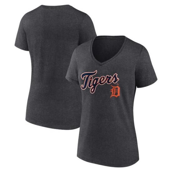 デトロイト・タイガース レディース チーム ロックup Vネック Tシャツ - チャコールは、メジャーリーグ公認のMLBグッズです。