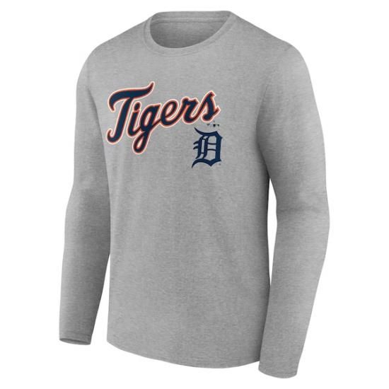 デトロイト・タイガース チーム ロックup ロングスリーブ Tシャツ - グレーは、メジャーリーグ公認のMLBグッズです。