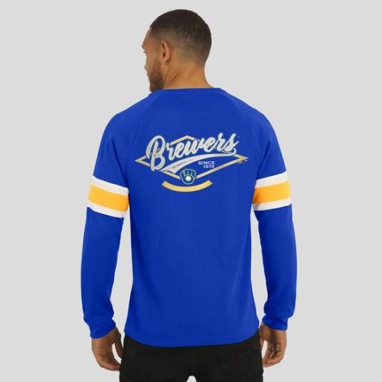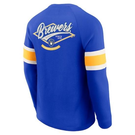 ミルウォーキー・ブルワーズ Darius Rucker コレクション by ファナティクス Waffle-ニット ラグラン ロングスリーブ ヘンリー Tシャツ - ロイヤルは、メジャーリーグ公認のMLBグッズです。