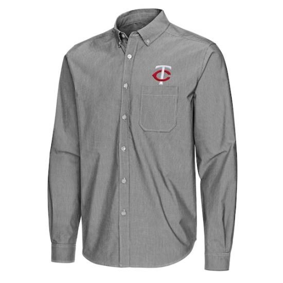 ミネソタ・ツインズ アンティグア Porter Woven ロングスリーブ ボタン-ダウン シャツ - ブラックは、メジャーリーグ公認のMLBグッズです。