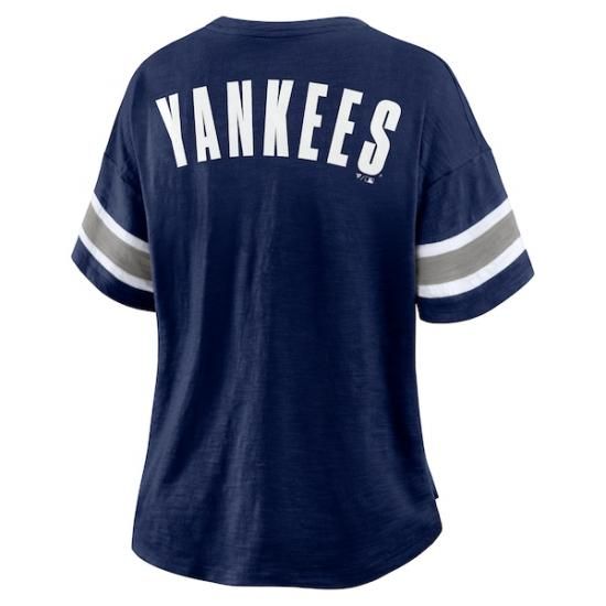 ニューヨーク・ヤンキース ファナティクス レディース Curl Rアウトe Tシャツ - ネイビーは、メジャーリーグ公認のMLBグッズです。