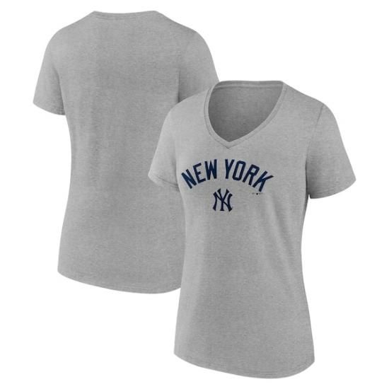 ニューヨーク・ヤンキース レディース チーム ロックup Vネック Tシャツ - グレーは、メジャーリーグ公認のMLBグッズです。