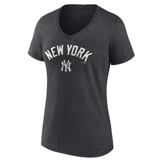 ニューヨーク・ヤンキース レディース チーム ロックup Vネック Tシャツ - チャコールは、メジャーリーグ公認のMLBグッズです。