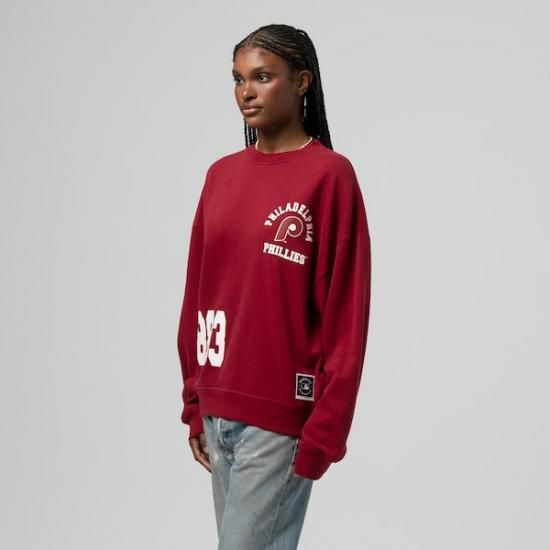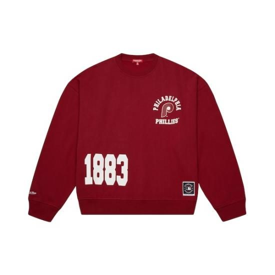 フィラデルフィア・フィリーズ ミッチェル&ネス レディース クルーneck スウェット - Burgundyは、メジャーリーグ公認のMLBグッズです。