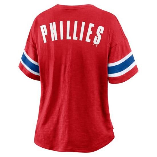 フィラデルフィア・フィリーズ ファナティクス レディース Curl Rアウトe Tシャツ - レッドは、メジャーリーグ公認のMLBグッズです。