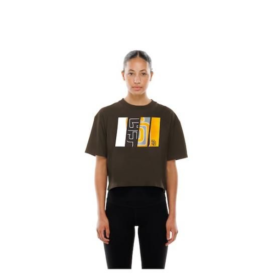 サンディエゴ・パドレス New Era(ニューエラ) レディース ボックスy フォイル ロゴ Tシャツ - ブラウンは、メジャーリーグ公認のMLBグッズです。