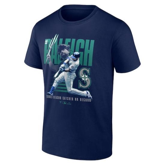 Cal Raleigh シアトル・マリナーズ キャッチer ホームラン Record Tシャツ - ネイビーは、メジャーリーグ公認のMLBグッズです。