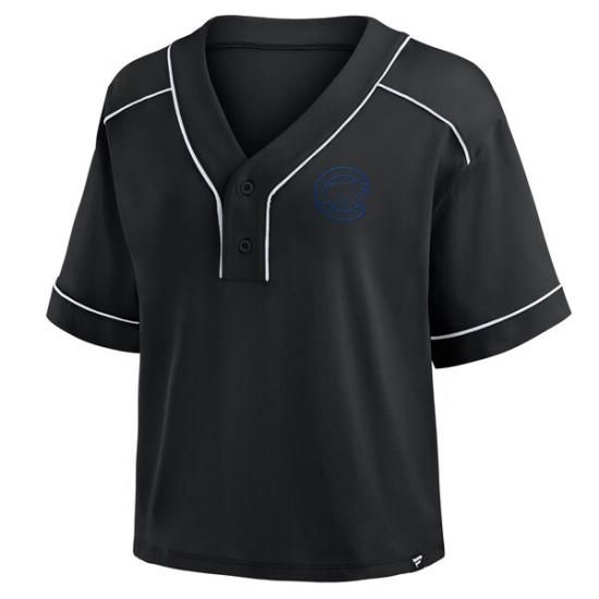 シカゴ・カブス ファナティクス レディース オーバーサイズ チャンプ ゲーム 短く切った Vネック Tシャツ - ブラックは、メジャーリーグ公認のMLBグッズです。