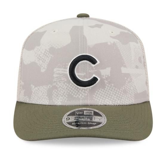 シカゴ・カブス New Era(ニューエラ) 2025 アームド フォーシズ デイ 9SEVENTY ストレッチ-スナップ ハット - ライト Beige/Oliveは、メジャーリーグ公認のMLBグッズです。