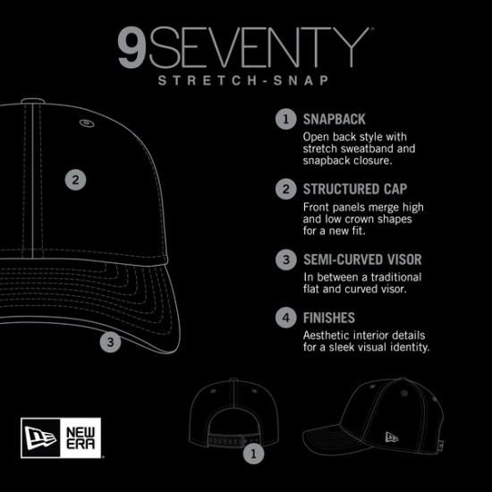 The 9SEVENTY provides a modern アジャスター fit and versatile style with its structured クラウン, semi-curved バイザー and performance stretch 汗止め