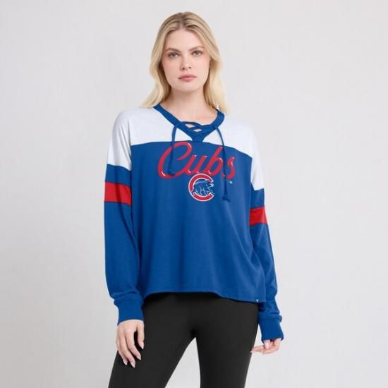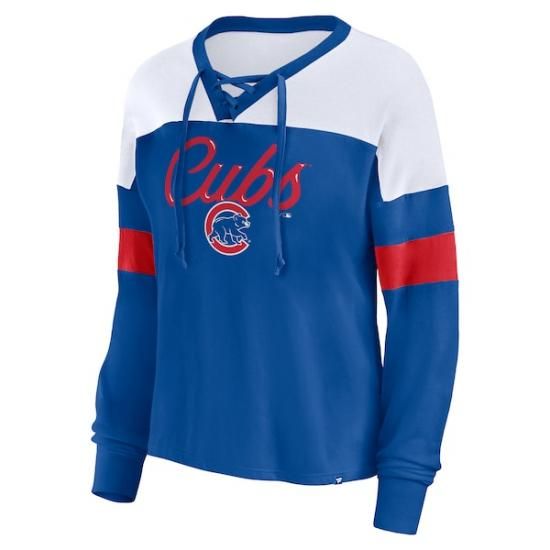 シカゴ・カブス ファナティクス レディース Even マットch レース-アップ ロングスリーブ Vネック Tシャツ - ロイヤル/ホワイトは、メジャーリーグ公認のMLBグッズです。