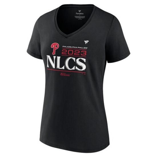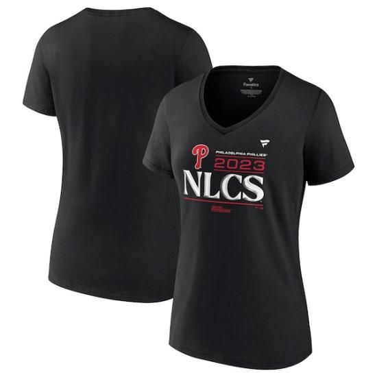 フィラデルフィア・フィリーズ ファナティクス レディース 2023 ディヴィジョン シリーズ ウィナー ロッカー ルーム プラス サイズ Vネック Tシャツ - ブラックは、メジャーリーグ公認のMLBグッズです。