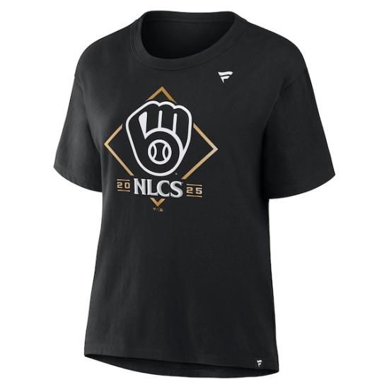 ミルウォーキー・ブルワーズ ファナティクス レディース 2025 ナショナル リーグ ディヴィジョン シリーズ チャンピオン ロッカー ルーム Tシャツ - ブラックは、メジャーリーグ公認のMLBグッズです。