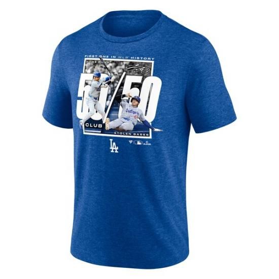 大谷翔平 ロサンゼルス・ドジャース ファナティクス ユース 50/50 クラブ Tシャツ - ヘザー ロイヤルは、メジャーリーグ公認のMLBグッズです。