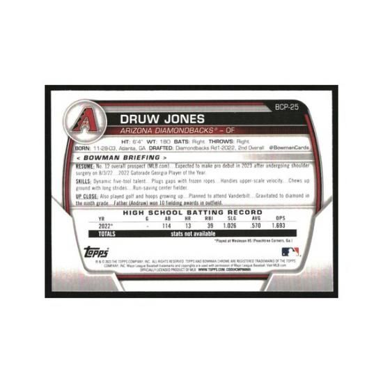 2023 リボンman クローム プロspects #BCP25 Druw Jオンes RC ルーキ