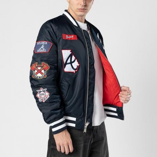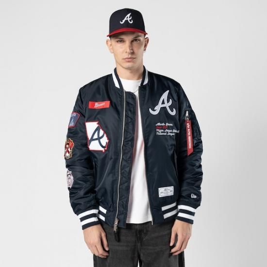 アトランタ・ブレーブス New Era(ニューエラ) x Alpha Industries フル-ジップ Bomber ジャケット - ネイビーは、メジャーリーグ公認のMLBグッズです。