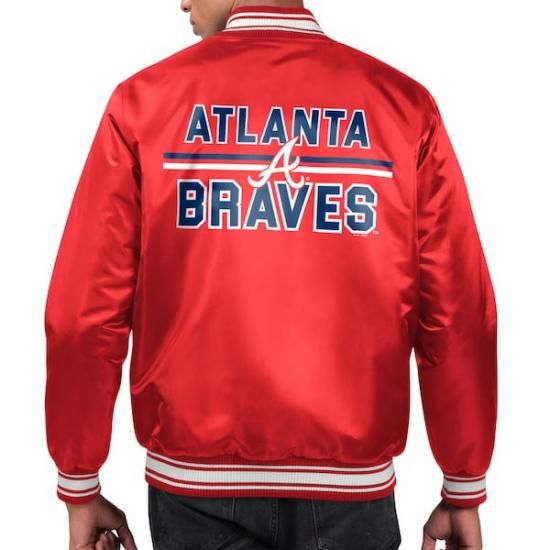 アトランタ・ブレーブス スターター プリント チーム ロゴ サテン ヴィーシティ フル-スナップ ジャケット - レッドは、メジャーリーグ公認のMLBグッズです。