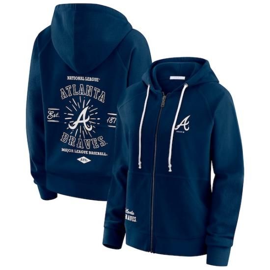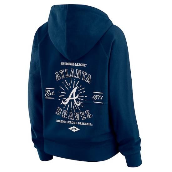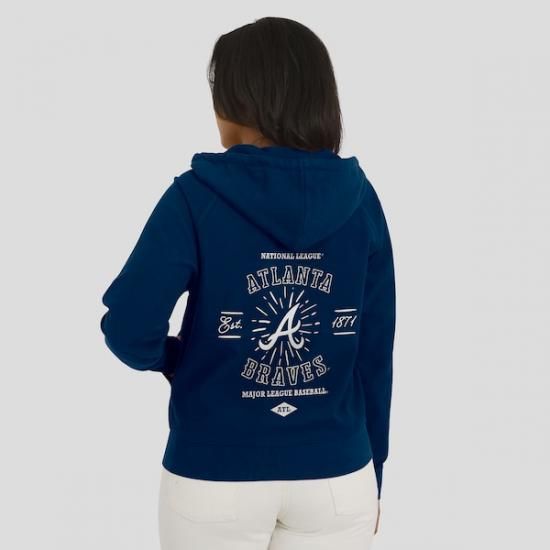 アトランタ・ブレーブス WEAR by Erin Andrews レディース ヴィンテージ フル-ジップ ラグラン パーカー - ネイビーは、メジャーリーグ公認のMLBグッズです。