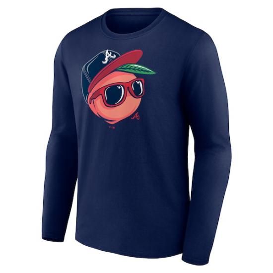 アトランタ・ブレーブス Mr. Peach ロングスリーブ Tシャツ - ネイビーは、メジャーリーグ公認のMLBグッズです。