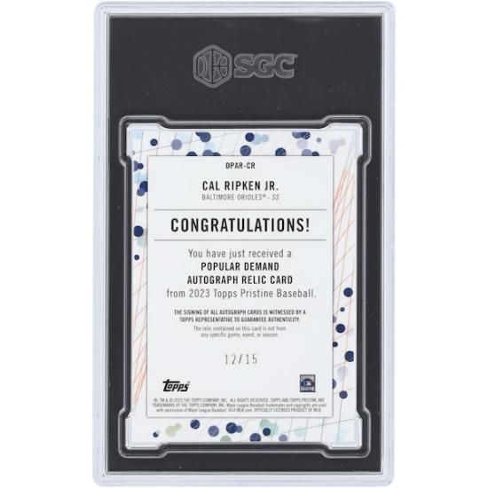 カル・リプケン ジュニア. ボルティモア・オリオールズ 直筆サイン入り 2023 トッププレーヤー Pristine ピンク Refracトゥーr ポップular Dem& デュアル-カラー Relic #DPAR-CR #12/15 SGC オーセンティックアットed 9.5/10 カードは、メジャーリーグ公認のMLBグッズです。