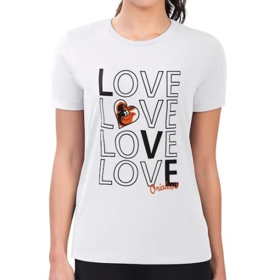ボルティモア・オリオールズ G-III 4Her by カール バンクス レディース Super-スリムフィット 軽量 ラブ グラフィック チーム Tシャツ - ホワイトは、メジャーリーグ公認のMLBグッズです。
