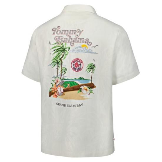 ボストン・レッドソックス トゥーmmy Bahama クーパーズタウン コレクション グランド Slam Bay キャンプ ボタン-アップ シルク シャツ - クリームは、メジャーリーグ公認のMLBグッズです。