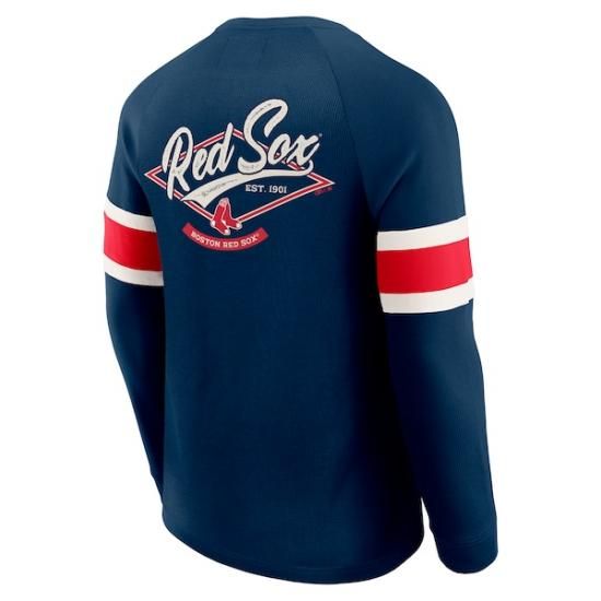 ボストン・レッドソックス Darius Rucker コレクション by ファナティクス Waffle-ニット ラグラン ロングスリーブ ヘンリー Tシャツ - ネイビーは、メジャーリーグ公認のMLBグッズです。