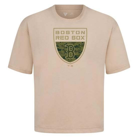 ボストン・レッドソックス レベルウエア オーバーサイズ Luxe シグネクチャー ニット バックルr Tシャツ - カーキは、メジャーリーグ公認のMLBグッズです。