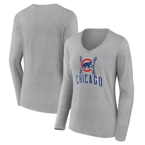 シカゴ・カブス レディース ファストボール ロングスリーブ Vネック Tシャツ - グレー